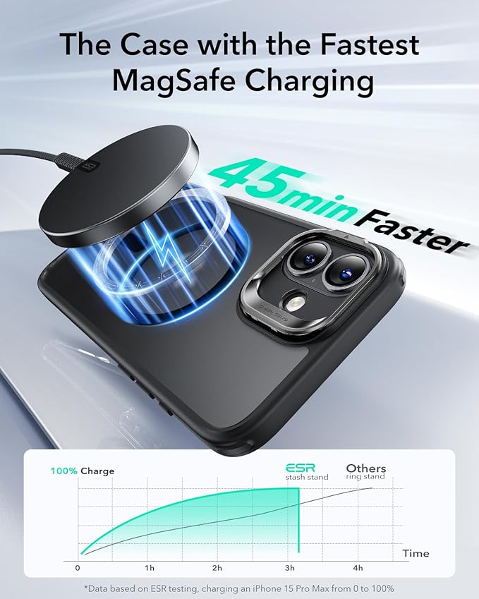 - Adjustable Stash Stand: positioned around camera frame to stay hidden when folded away while keeping MagSafe ring 100% unobstructed; enjoy a freely adjustable and stable view for watching shows whenever, wherever