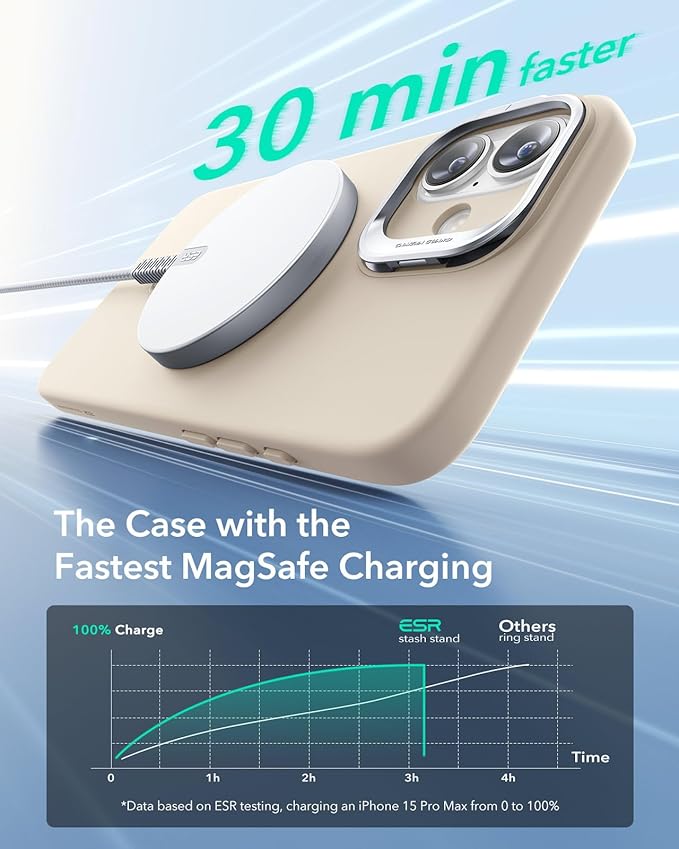 - Adjustable Stash Stand: positioned around camera frame to stay hidden when folded away while keeping MagSafe ring 100% unobstructed; enjoy a freely adjustable and stable view for watching shows whenever, wherever