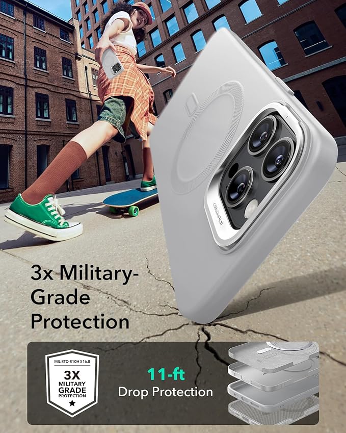 ESR for iPhone 16 Pro Case, Silicone Case with Stand, Compatible with MagSafe, Military-Grade Protection, Built-in Camera Stash Stand, Magnetic Phone Case for iPhone 16 Pro, Cloud Series, Grey