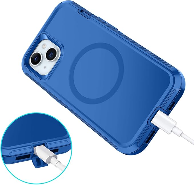 for iPhone 14 Plus Case,iPhone 15 Plus Case [Compatible with MagSafe] Shockproof 3-Layer Full Body Protection Rugged Heavy Duty Cover for Apple iPhone 14/15 Plus 6.7",Sea Blue