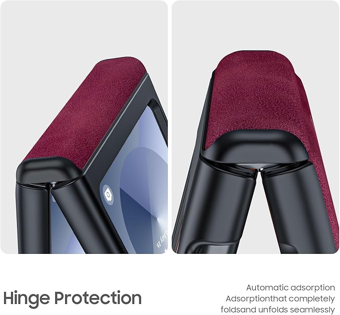 - [Galaxy Z Flip 6 /Z Flip 7 FE Case with Hinge Protection] This shockproof case with hinge design always fits tightly with the Galaxy Z Flip 6/Z Flip 7 FE hinge part to ensure every flip response, the clever connection allows you to enjoy the unexpected joy of every fold, 360° omni-directional hinges minimize the hinge wear and impact of drops. The 360° omni-directional hinge minimizes hinge wear and tear and reduces the impact of drops without feeling bulky, and the thin and lightweight design makes it easier to dissipate heat.