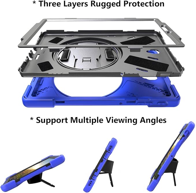 - 【Portable & Three Viewing Angles】- Portablet Heavy Duty Protective Case,Easy Installation and Removal,360 Degree rotating design transforms case to be standing with three comfortable position angles, viewing angle and typing angle.A nice option when Browsing videos or following a recipe when cooking in the kitchen.Conveniently watch movies, play games , read favorite EBooks, draw, type and chat,wherever and whenever.