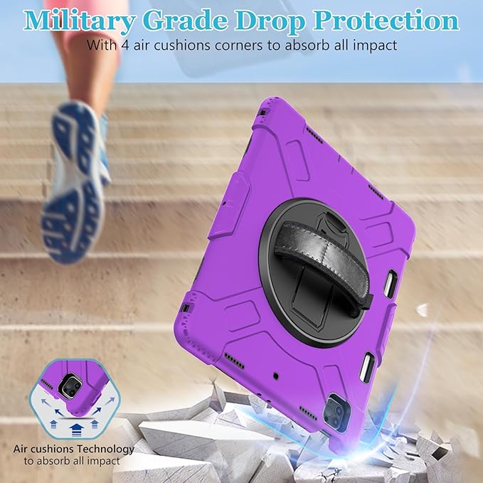 - MATERIAL COMPOSITION: This iPad Pro 12.9 Case has a built-in screen protector(it can be removed). The inner cover are Made from Hard PC and outer layer is silicone. Our triple defense system has passed the Military Grade Drop Test [MIL-STD 810G-516.6] and can withstand shocks and drops from up to 15 feet, 10,000 times. These shock-absorbent layers incorporate Air Cushion Technology to effectively protect your iPad from accidental drops, bumps, and scratches.