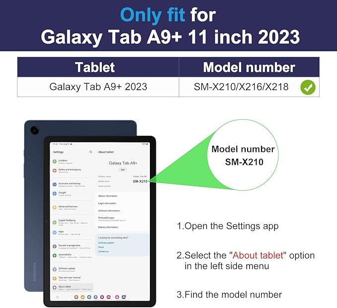 - Compatibility - Specifically Designed for the Samsung Galaxy Tab A9 Plus / A9 + 11 inch 2023 Released Tablet(Model Number: SM-X210/X216/X218). Not compatible with any other Samsung tablet model