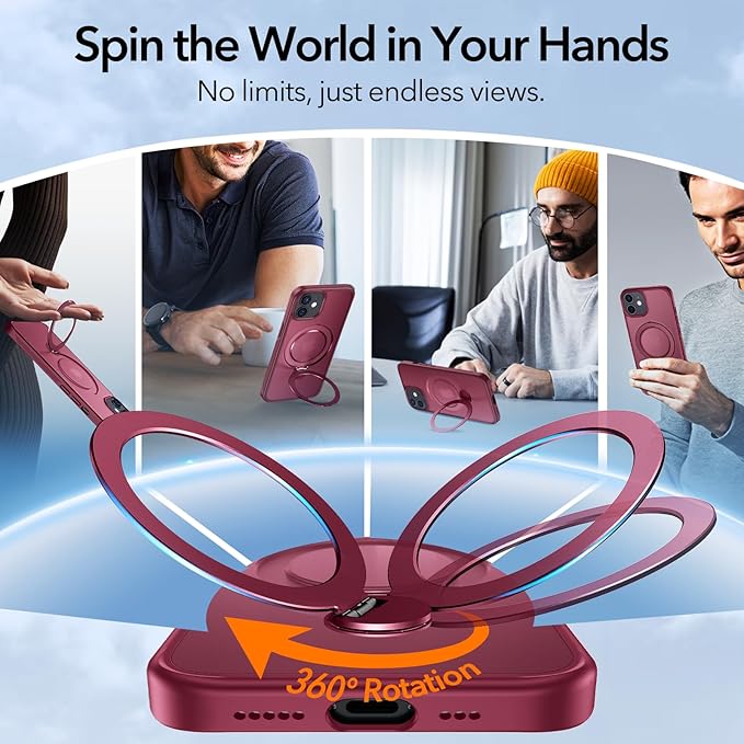 - [Versatile Flexi-Stand, Easier Portrait & Landscape Switch] Designed with an innovative dual-axis structure, this iPhone 12 case with rotatable kickstand ring holder offers effortless switching between portrait and landscape modes for ultimate versatility. The 360° rotating ring and flexible kickstand ensure smooth operation and multiple viewing angles, allowing you to adjust the position for optimal comfort. Tested through over 30,000 rotations, this case guarantees durability and long-lasting reliability, keeping your device secure and stable. Whether you're enjoying a movie in landscape mode or attending a video call in portrait mode.