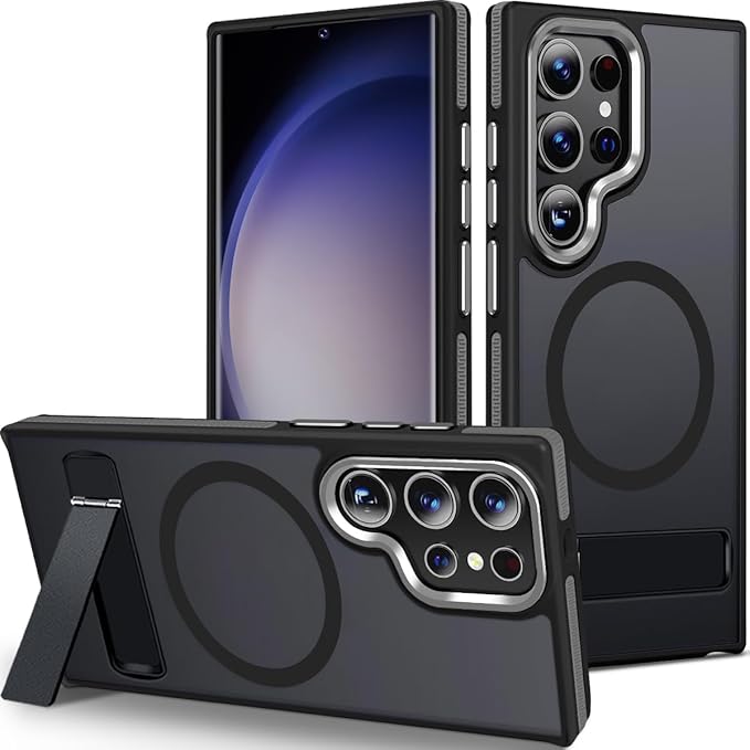 Magnetic Case for Samsung Galaxy S24 Ultra with Kickstand, Compatible with MagSafe, Anti-Slip S24 Ultra Case, 3-Modes Stand Military-Grade Protection, Galaxy S24 Ultra Cover (Black/Grey)