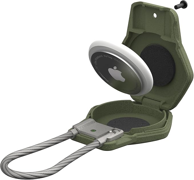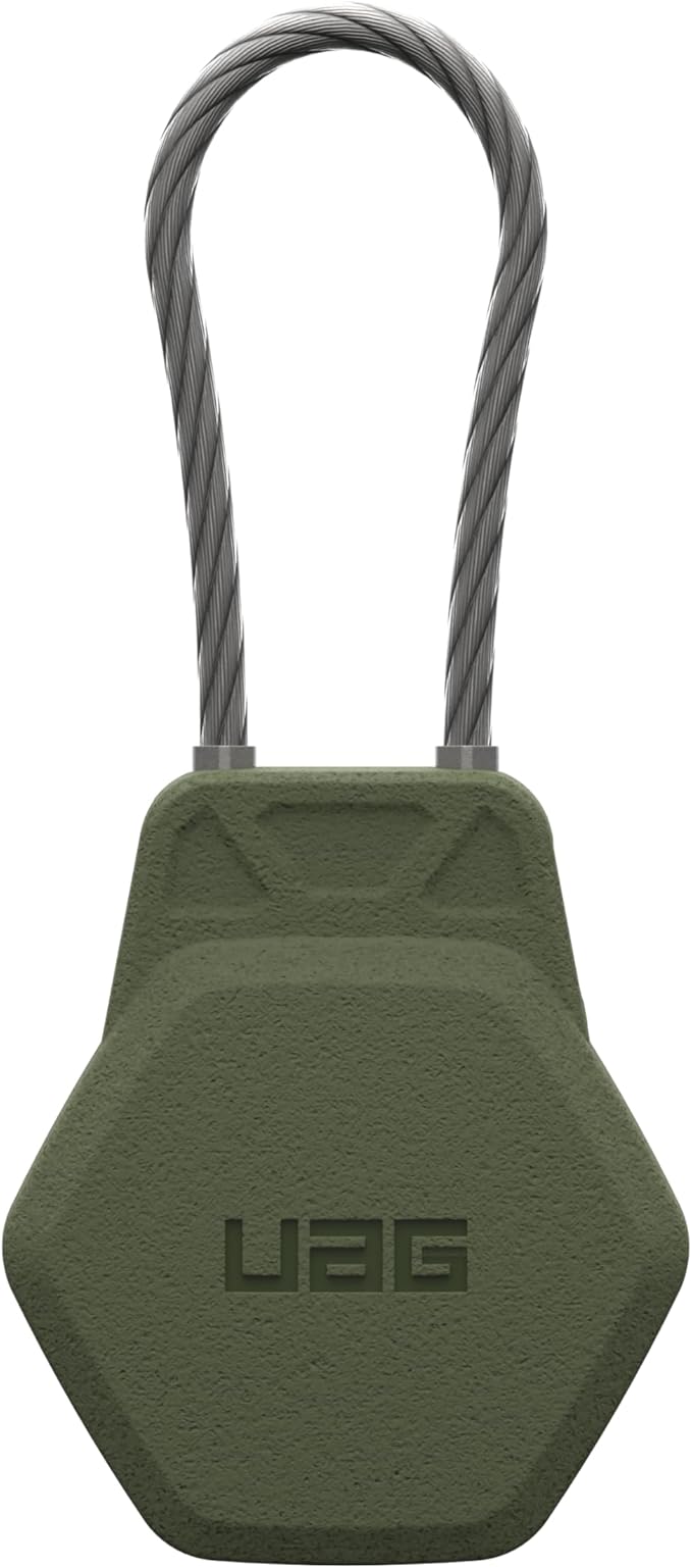 URBAN ARMOR GEAR UAG Compatible with AirTag Case Civilian - Hard Shell Lock Case Holder Keychain with Wire Cable for Keys, Luggage & Bags, Anti-Lost Ultra Secure GPS Protective Cover, Olive Drab