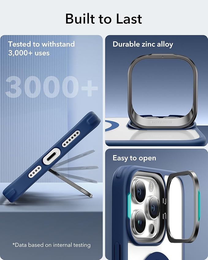 - Adjustable Stash Stand: positioned around camera frame to stay hidden when folded away and keep magnetic ring 100% unobstructed; stable at any angle up to 85° for the perfect hands-free viewing