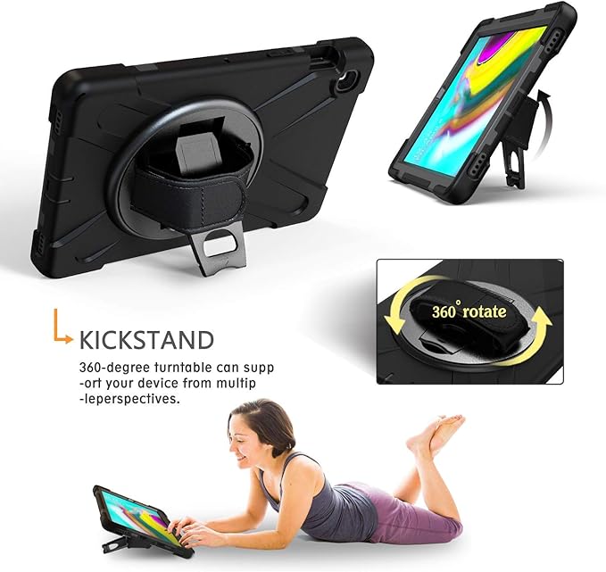 - 💎【360° Swivel Design】- ❶ 360-degree rotating sturdy kickstand supports flexible landscape and portrait viewing for watching videos, conferences, or typing. ❷ 360-degree rotatable and adjustable hand strap on the back that allows you to hold it one-handed, it is convenient for kids, toddlers, children, teachers, students, waiters, nurses, coach, and etc