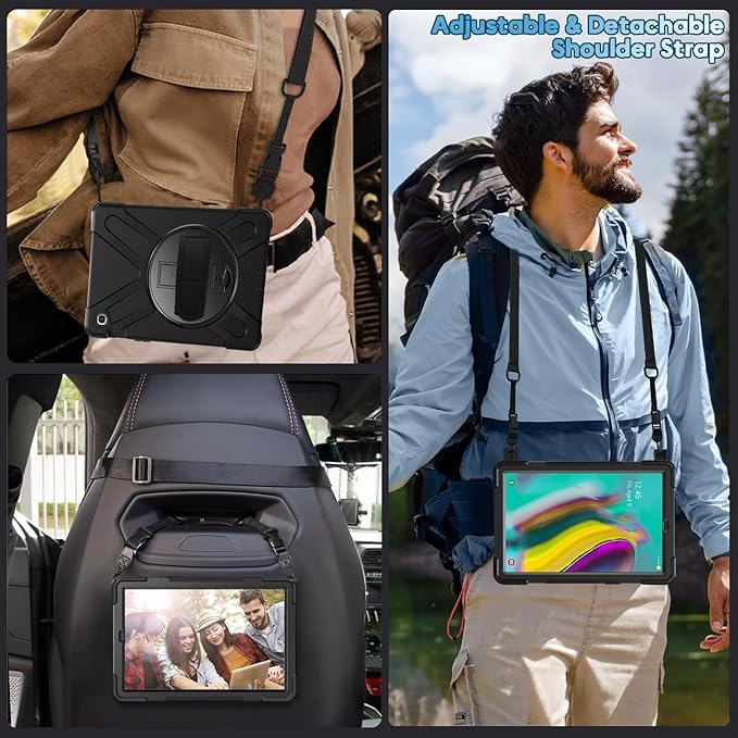 - 💎【Detachable and Extendable Carrying Shoulder Strap】- Carry your tablet more securely during traveling, engineering outdoor operations, taking a photograph, etc. The shoulder strap also allows you to hang up your tablet behind the car headrest for back seat entertainment for kids