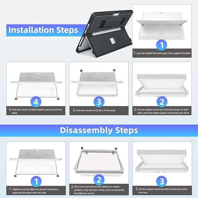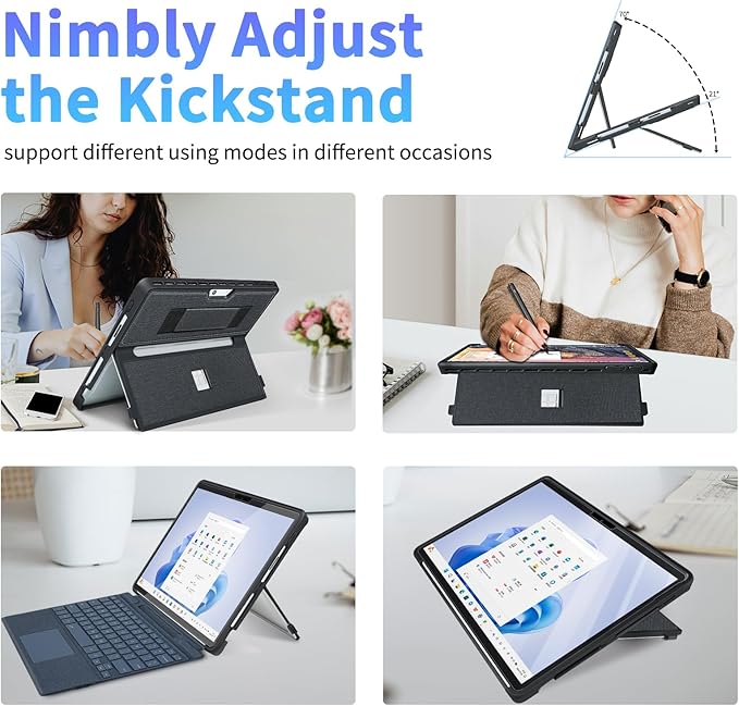 - 【COMPATIBILITY】Upgraded cover to an all-in-one case so you don't have to worry about the back cover falling off. Designed for Microsoft Surface Pro 11, Surface Pro 10, Surface Pro 9, and Surface Pro 8 13-Inch with precise cutouts. It provides easy access to all controls. Be sure to check the tablet model number before purchasing