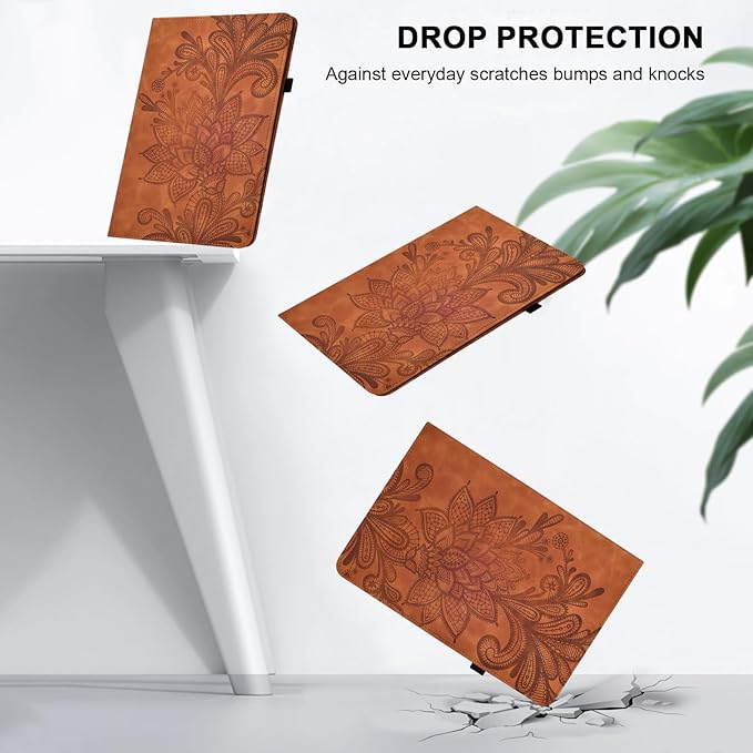 Case for Lenovo Tab M10 Plus 3rd Gen 10.6 Inch 2022 (TB125FU/128FU), Embossed Lace PU Leather Flip Folio Tablet Case with Elastic Band & Card Slots/Holder, Multi-Angle Viewing Stand Cover, Brown