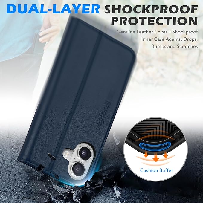 - 【GENUINE LEATHER & FULL PROTECTION】 SHIELDON iPhone 16 leather cases are made from top layer cowhide leather + TPU phone holder case. 1. These hides are selected for quality, strength, character and grain. 2. Soft full-body shell comes with shockproof edge and ensures your phone against scratches, drops and bumps. 3. The increased lips around the lens will protect your camera