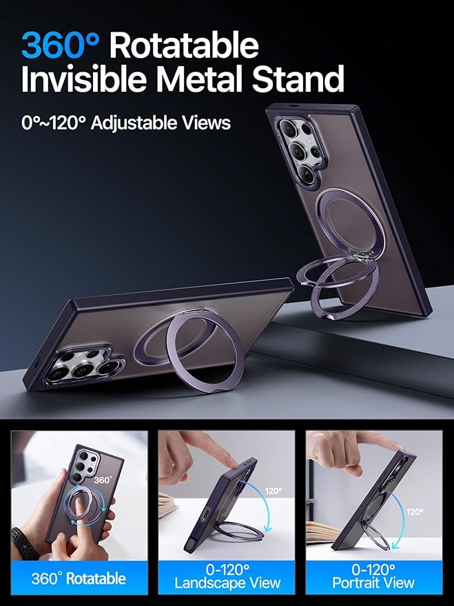 - Enjoy a flexible viewing experience with the built-in metal ring. It rotates freely in all directions, serving as both a sturdy stand for hands-free use and a secure grip for daily carrying.