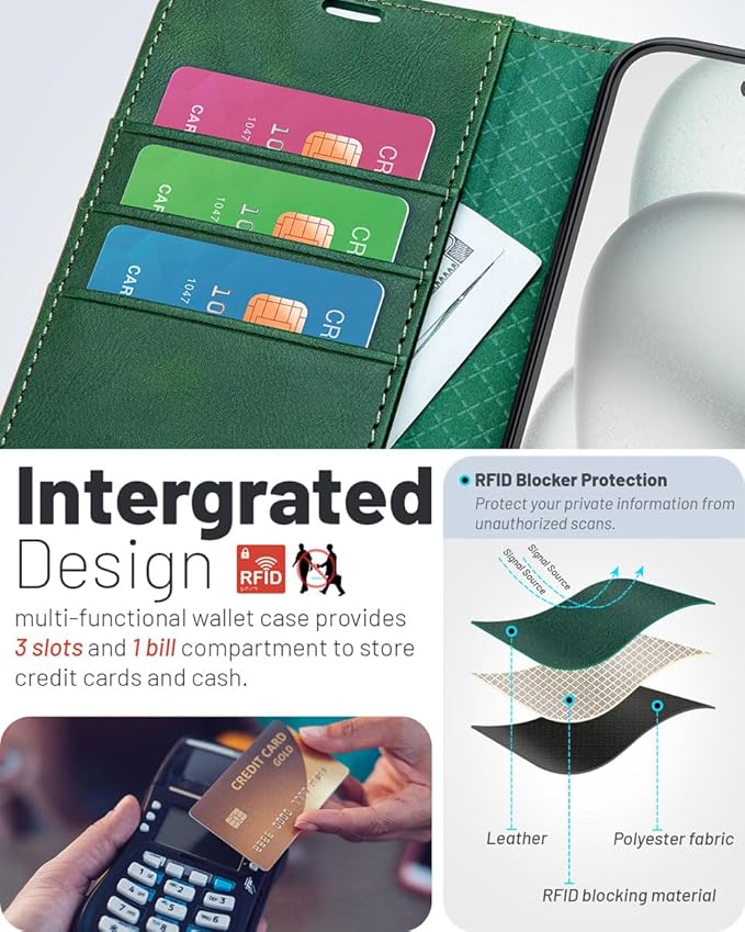 - Multi-functional: Features 3 card slots and a wallet compartment with magnetic closure, can secure 3 cards and some banknotes while closing perfectly; can fold the iPhone 16 phone case to create a sturdy kickstand for hands-free viewing; equipped with RFID shielding technology to protect your card information from data theft by RFID scanners