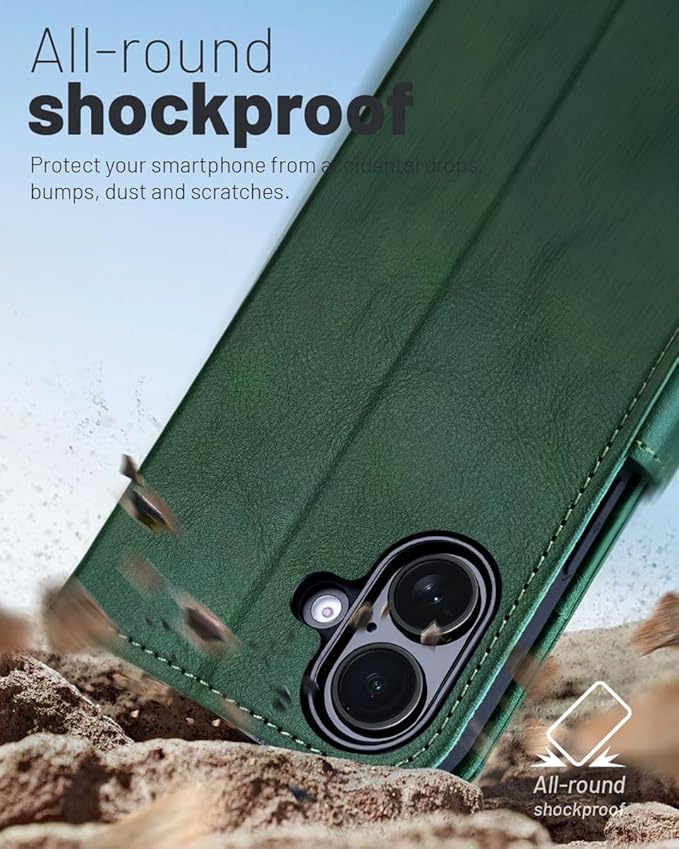 - Superior Protection: This iPhone 16 case wallet can protect your device from surface scratches, drops and dents; made of premium PU soft durable leather to prevent scratches and fingerprints, its natural surface texture provides a soothing, luxurious tactile feel; the TPU inner shell with raised edge and extra cushioning provides an all-around shockproof design