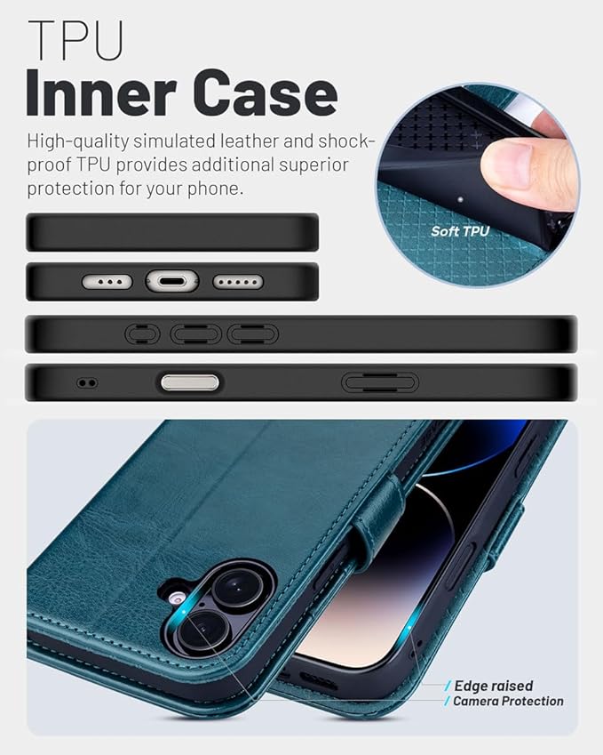 - Superior Protection: This iPhone 16 case wallet can protect your device from surface scratches, drops and dents; made of premium PU soft durable leather to prevent scratches and fingerprints, its natural surface texture provides a soothing, luxurious tactile feel; the TPU inner shell with raised edge and extra cushioning provides an all-around shockproof design