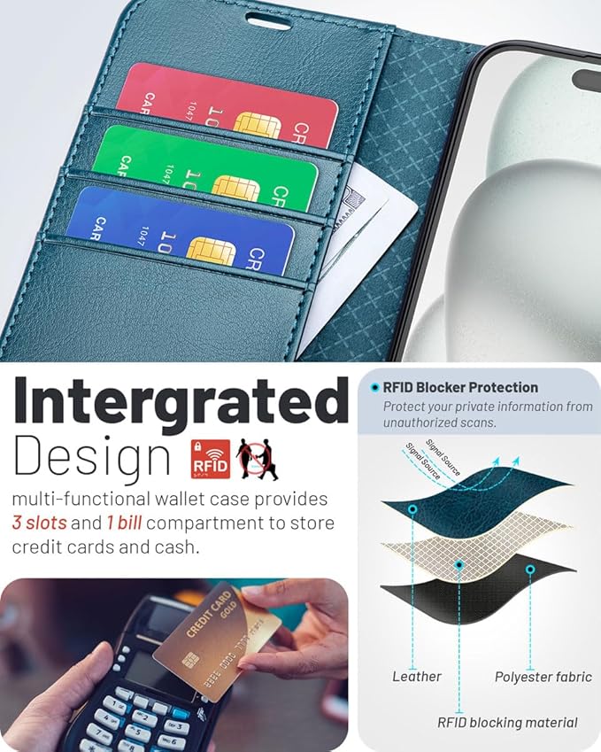 - Multi-functional: Features 3 card slots and a wallet compartment with magnetic closure, can secure 3 cards and some banknotes while closing perfectly; can fold the iPhone 16 phone case to create a sturdy kickstand for hands-free viewing; equipped with RFID shielding technology to protect your card information from data theft by RFID scanners