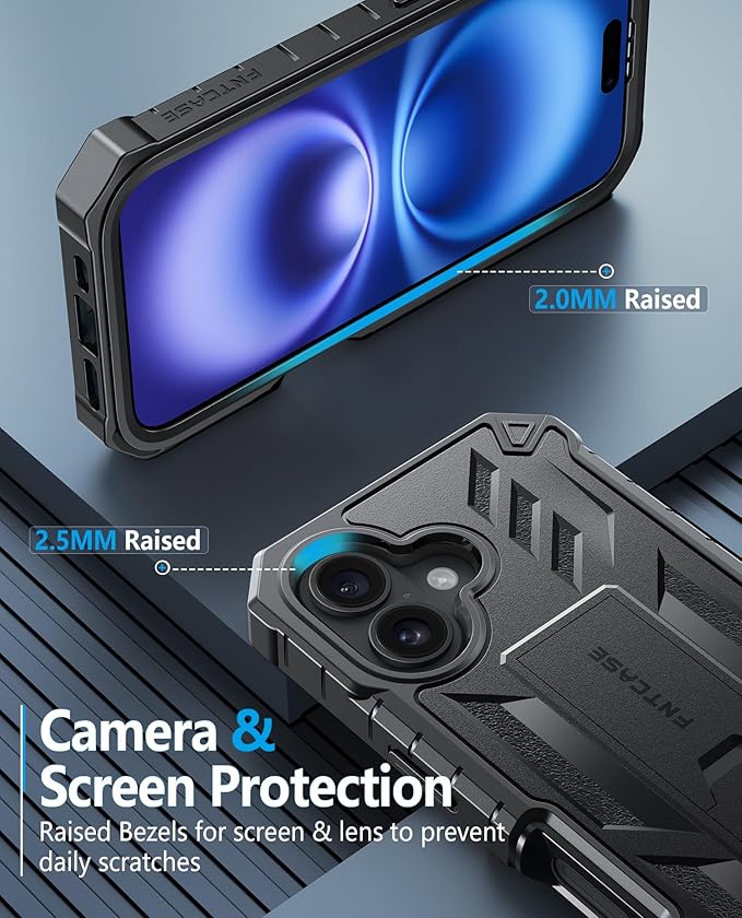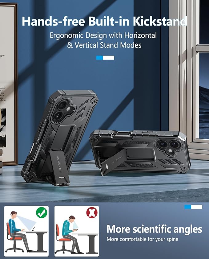 - Built in Kickstand Designed: The iPhone 16 case is designed with a built-in stand that allows you to look down at your phone from a comfortable angle and free your hands, both horizontally and vertically, without the trouble of a bulging back