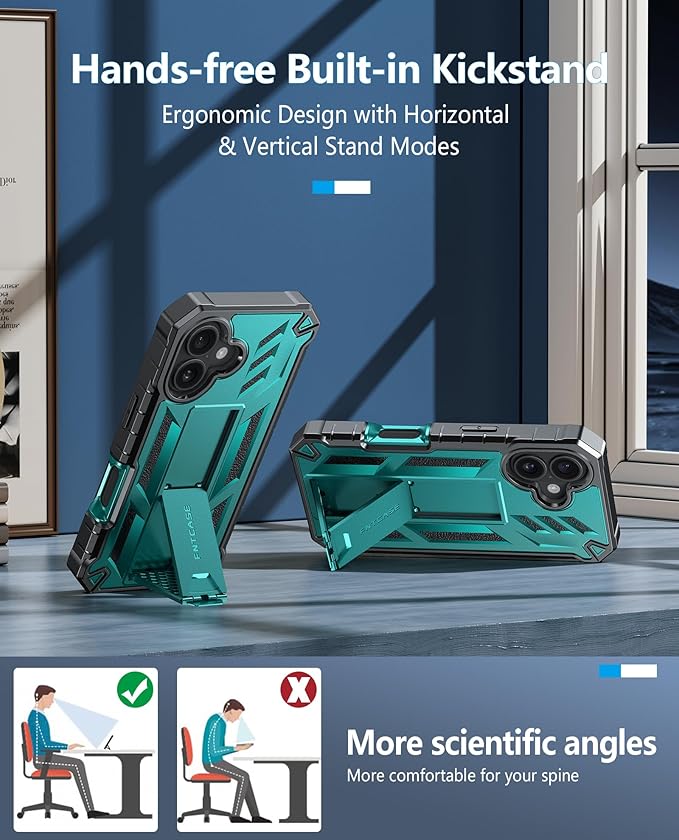 - Built in Kickstand Designed: The phone 16 case is designed with a built-in stand that allows you to look down at your phone from a comfortable angle and free your hands, both horizontally and vertically, without the trouble of a bulging back