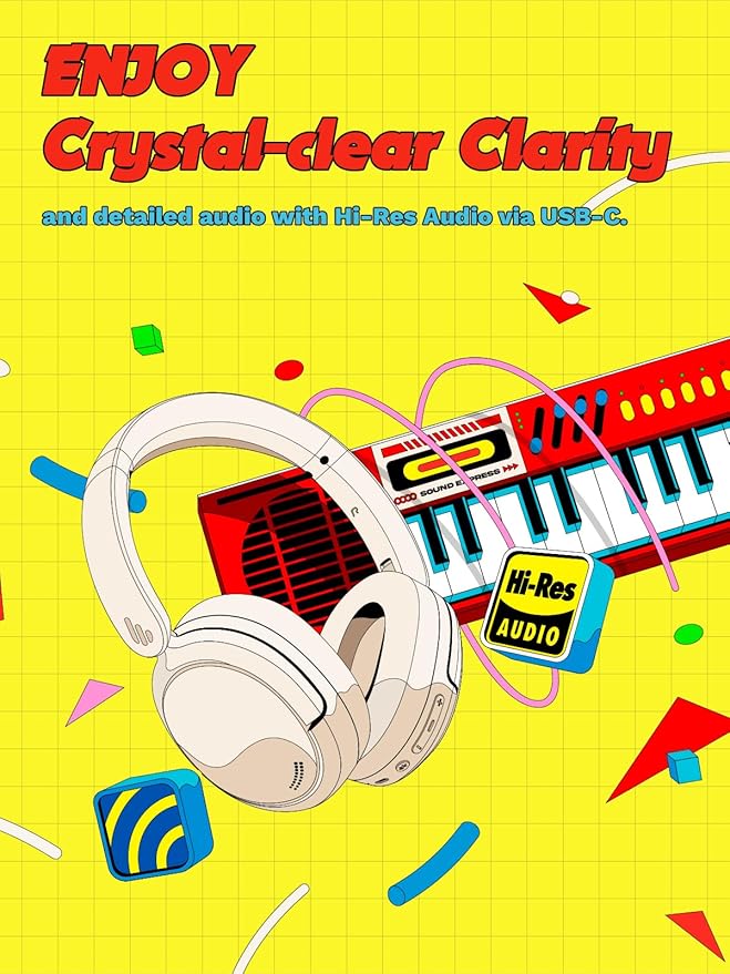 - [Quality Sound] The 40mm dynamic driver provides an expansive soundstage and powerful bass, while the titanium-coated diaphragm ensures clear and transparent mid-high frequencies, making every listening session pure and enjoyable. In addition, it also supports Hi-Res audio under USB-C wired connection.