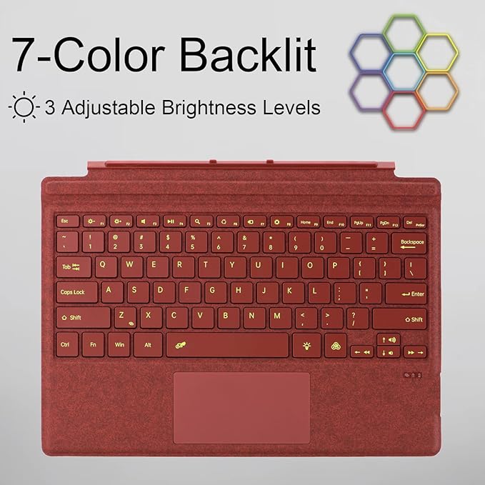 Type Cover for Microsoft Surface Pro 7+ / Pro 7 / Pro 6 / Pro 5 / Pro 4 / Pro 3, 12.3 inch, Ultra-Slim Wireless Tablet Keyboard with Multi Touchpad Bluetooch (Poppy Red)
