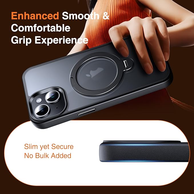 - 👍[Did you Know?The 360°Stand Offers Finger Ring Grip & Hook Security]: Yes, you'd be surprised to learn the stand on the Magnetic iPhone 13/14 Cover is not just for propping up your phone-It doubles as a handy finger ring holder, securely locked your iPhone in your palm. Or imagine your hands are full and nowhere to hold your phone. This ring allows you just one-finger hooking. Whether you're multitasking or on the move, the 360°Stand Ring offers you a firmer, easier, more stable grip.