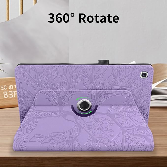 Rotating Case for Samsung Galaxy Tab A7 10.4'' 2022/2020 PU Leather Protective Cover Lightweight Flip Stand with Card Holder for Galaxy Tablet Model T500/T503/T505/T507-Purple