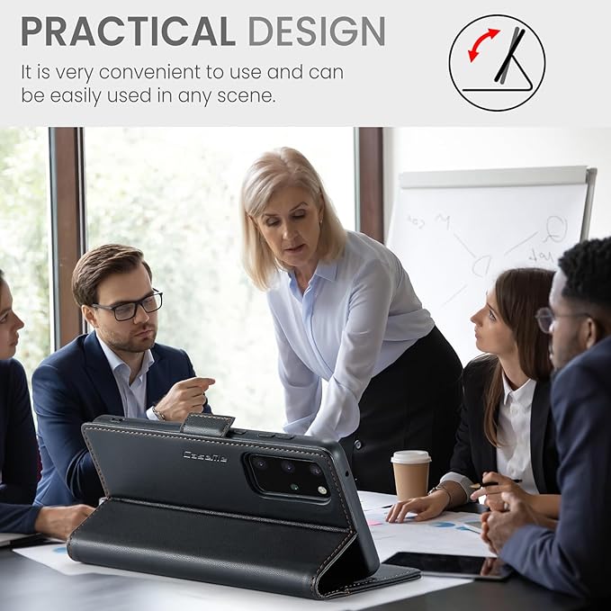 - [Multifunctional] This Galaxy S20 Plus Flip Wallet Leather Case with Adjustable Stand frees up your hands by allowing you to watch videos or movies at the best angle.Whether you're studying,working,exercise or entertainments, this wallet case will meet your needs.