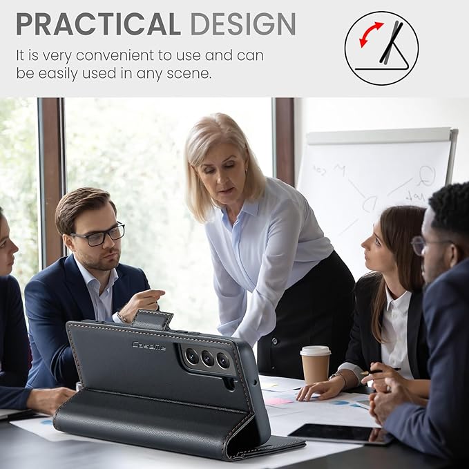 - [Multifunctional] This Galaxy S21 Plus Flip Wallet Leather Case with Adjustable Stand frees up your hands by allowing you to watch videos or movies at the best angle.Whether you're studying,working,exercise or entertainments, this wallet case will meet your needs.