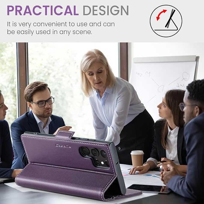 - [Multifunctional] This Galaxy S22 Ultra Flip Wallet Leather Case with Adjustable Stand frees up your hands by allowing you to watch videos or movies at the best angle.Whether you're studying,working,exercise or entertainments, this wallet case will meet your needs.