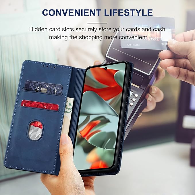 Jasonyu Flip Wallet Case for Google Pixel 9 Pro XL,Leather Magnetic Folio Cover with Card Holder,Kickstand - TPU Shockproof Durable Protective Phone Case,Blue