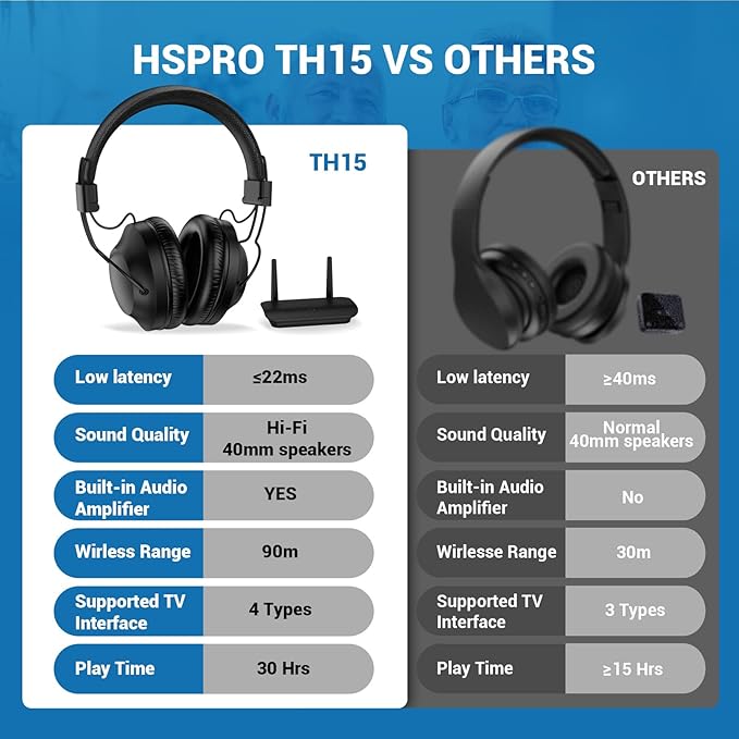 - No Audio Latency: The ROSIDA wireless headphones for TV features the latest wireless 2.4 GHz technology, which reduces the audio latency down to 22ms, significantly lower than the 200ms of typical Bluetooth solutions on the market. And it provide you the combination of lip reading and audio, and experience every exciting moment in real-time.