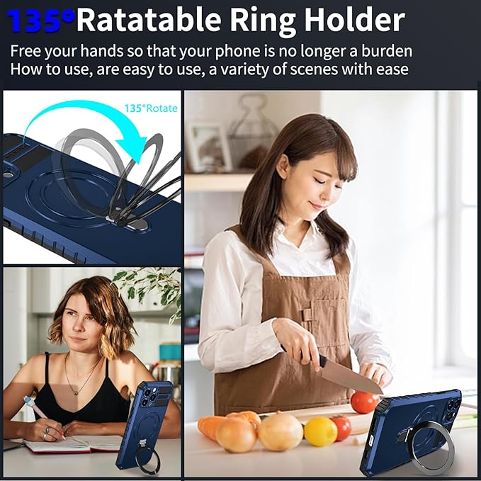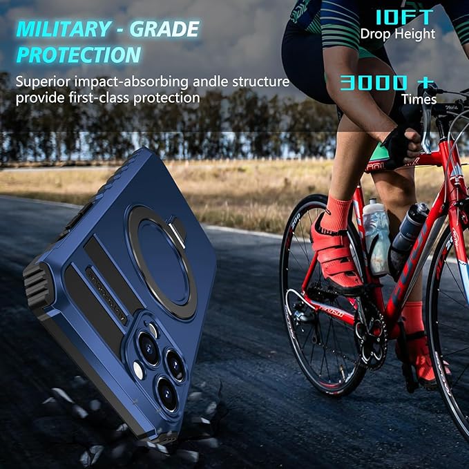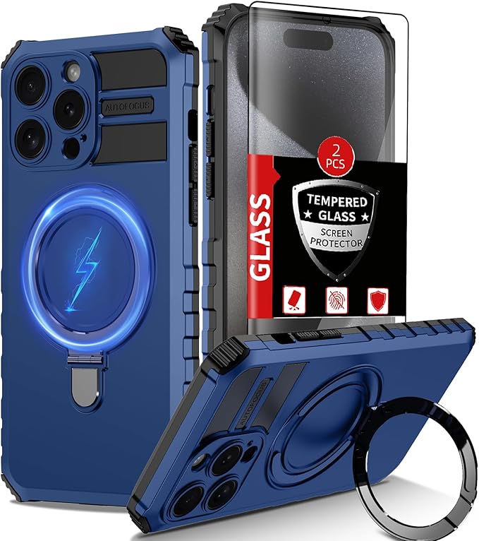 Magnetic for iPhone 14 Pro Max Case Compatible with MagSafe Wireless Charging,for 15 Pro Max Case with 2 Screen Protectors,Built-in Kickstand Ring,Shockproof Heavy Duty Protection,Blue