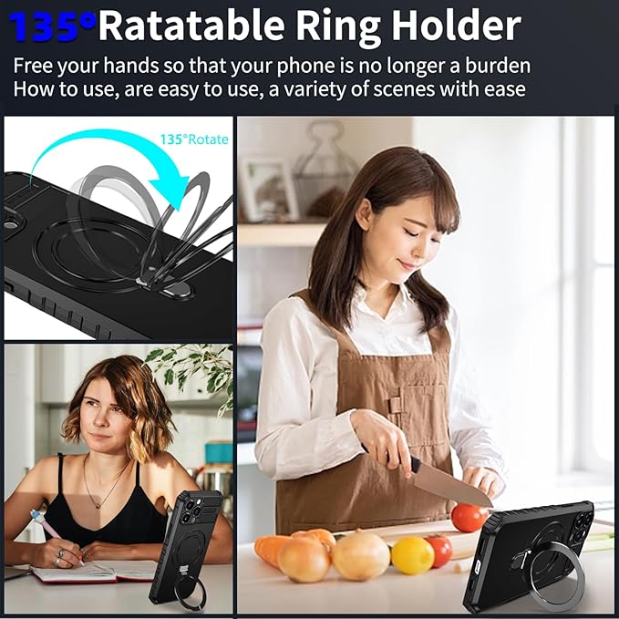 - 3.Built-in Invisible Kickstand Ring: The for iPhone 12 Pro Case built-in aluminum magnetic ring can stand stably in portrait or landscape mode when opened, and the back is completely invisible when folded (not invisible when using Magnetic accessories). Perfect for use at your desk or anywhere you work or consume media!
