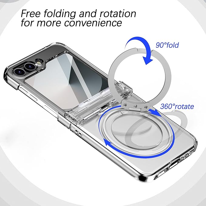 - [INVISIBLE KICKSTAND FUNCTION] - The Flip 6 case fully fits for all Magsafe accessories, with automatic alignment, stable adsorption, and support for safe. Foldable built-in Galaxy Z Flip 6 kickstand ring can be used both horizontally and vertically, with full 360 ° rotation and 180 ° angle adjustment. Meet your various needs in different occasions.
