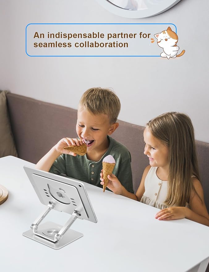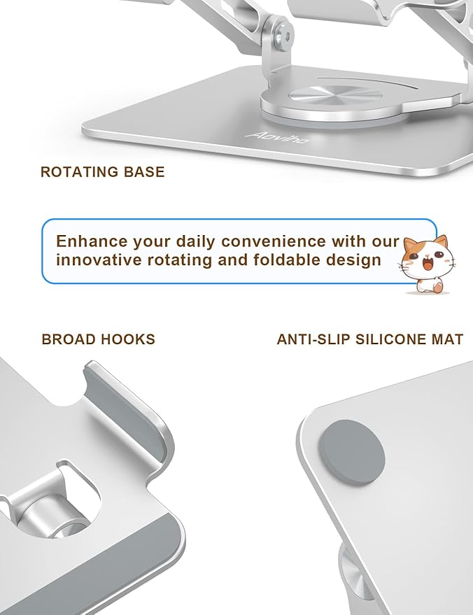 - 3-IN-1 FUNCTIONALITY: This 360° rotating tablet stand combines adjustable, foldable, and portable features, making it ideal for studying, working, or leisure activities. It offers enhanced convenience and ease of use.