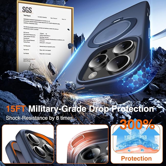 - 🛡️[How’s the Protection? Military-Grade Tested Drop Protection]: This iPhone 16 Pro Case with stand ring holder got military-grade toughness that can handle even the toughest drops. Its hidden air cushions embedded in the four corners absorb and disperse shockwaves upon impact, keeping your phone safe from crack. It also safeguards your camera and screen with a raised lip of 1.5mm, guarding these delicate from scratches. And all this, without adding undue bulk or weight.