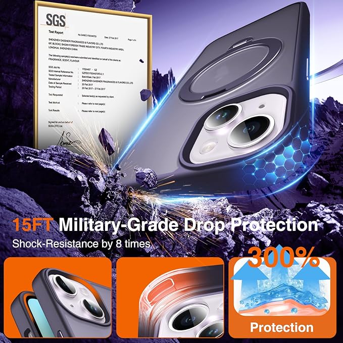 - 🛡️[How’s the Protection? Military-Grade Tested Drop Protection]: This iPhone 15 Case with stand ring holder got military-grade toughness that can handle even the toughest drops. Its hidden air cushions embedded in the four corners absorb and disperse shockwaves upon impact, keeping your phone safe from crack. It also safeguards your camera and screen with a raised lip of 1.5mm, guarding these delicate from scratches. And all this, without adding undue bulk or weight.