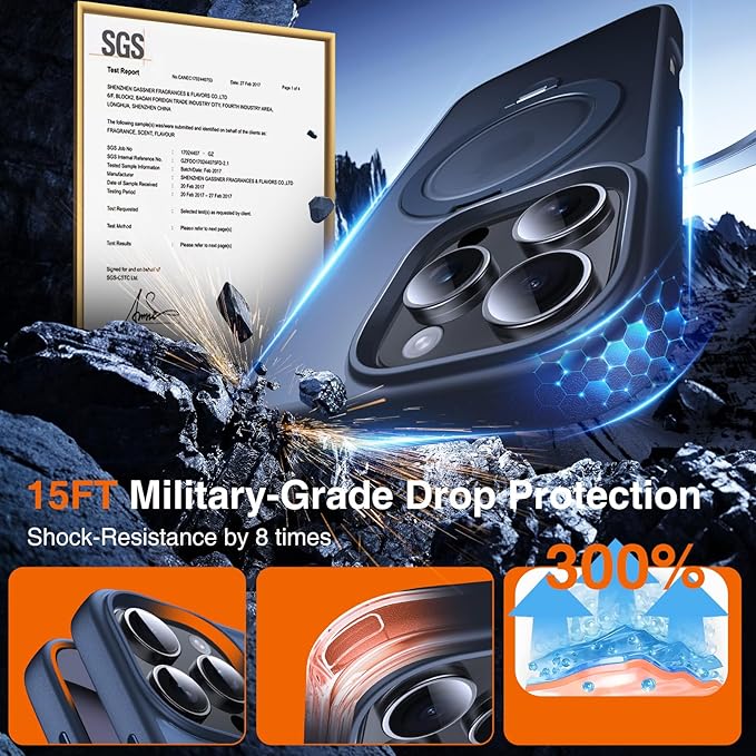 - 🛡️[How’s the Protection? Military-Grade Tested Drop Protection]: This iPhone 16 Pro Max Case with stand ring holder got military-grade toughness that can handle even the toughest drops. Its hidden air cushions embedded in the four corners absorb and disperse shockwaves upon impact, keeping your phone safe from crack. It also safeguards your camera and screen with a raised lip of 1.5mm, guarding these delicate from scratches. And all this, without adding undue bulk or weight.