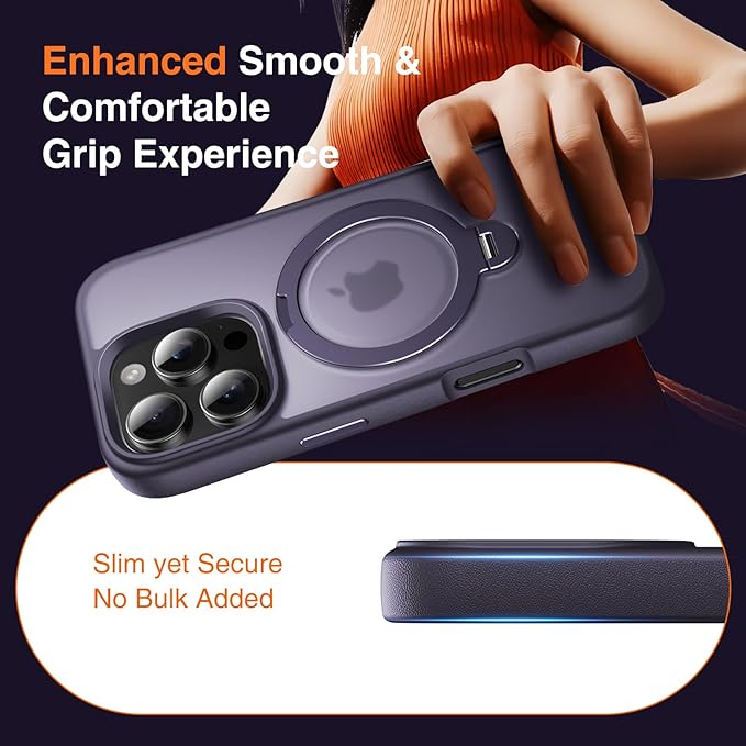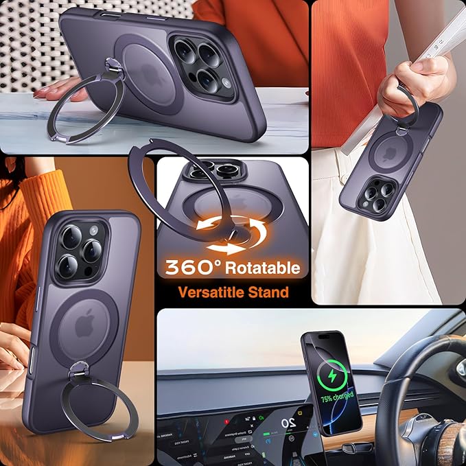 - 👍[Did you Know?The 360°Stand Offers Finger Ring Grip & Hook Security]: Yes, you'd be surprised to learn the stand on the Magnetic iPhone 16 Pro Max Cover is not just for propping up your phone-It doubles as a handy finger ring holder, securely locked your iPhone in your palm. Or imagine your hands are full and nowhere to hold your phone. This ring allows you just one-finger hooking. Whether you're multitasking or on the move, the 360°Stand Ring offers you a firmer, easier, more stable grip.