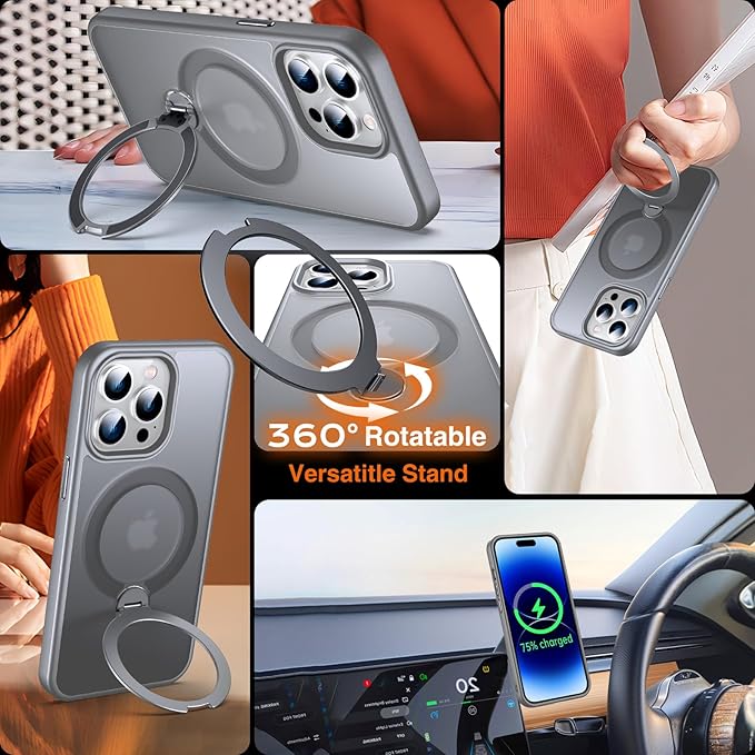 - 👍[Did you Know?The 360°Stand Offers Finger Ring Grip & Hook Security]: Yes, you'd be surprised to learn the stand on the Magnetic iPhone 14 Pro Cover is not just for propping up your phone-It doubles as a handy finger ring holder, securely locked your iPhone in your palm. Or imagine your hands are full and nowhere to hold your phone. This ring allows you just one-finger hooking. Whether you're multitasking or on the move, the 360°Stand Ring offers you a firmer, easier, more stable grip.