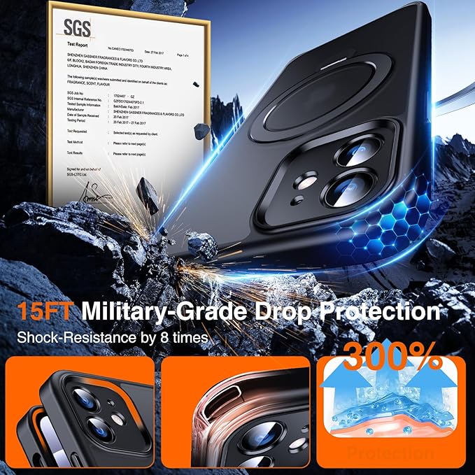 - 🧲[Stronger 38-N52 Magnetic, Compatible with MagSafe]: Our kickstand iPhone 12 Phone case with stand ring holder packs 38 N52 magnets of 80% stronger magnetic strength than others. Effortlessly attach to wireless chargers, wallets, and more–all with a satisfying snap. Moreover,it's mountain-road-proof. Imagine your iPhone sticking to your car mount like a rock climber's grip, even on the bumpiest rides. No shakes, no drops, just a solid connection that lets you focus on the drive.
