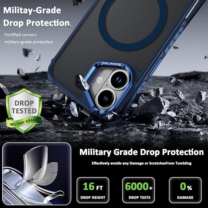 16 Case for iPhone 16 Phone, 6.1 Inch, with Stand, [Compatible with MagSafe] Heavy Duty Rugged Drop Protection Case [Compatible with MagSafe] Magnetic Phone Case for iPhone16, Blue