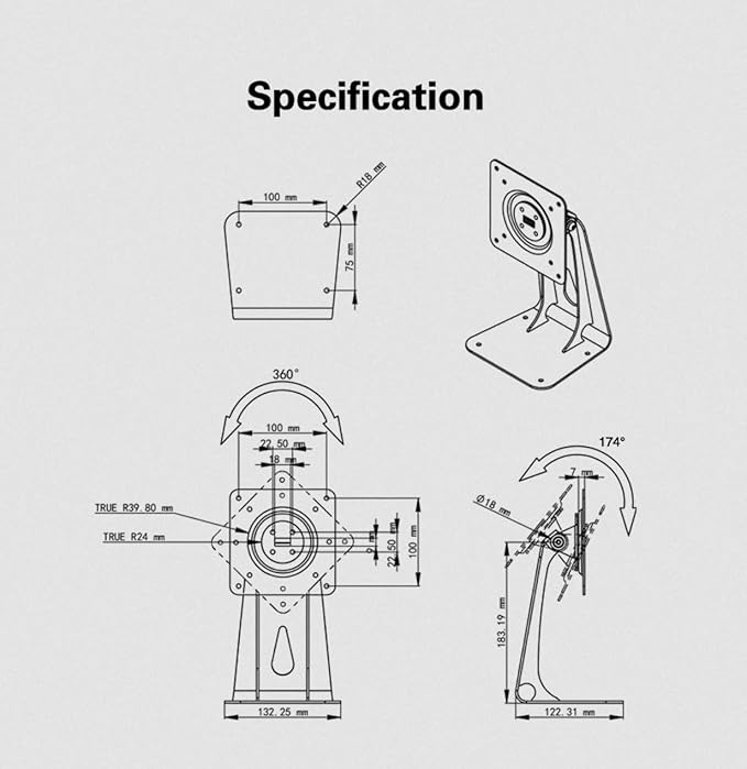 - Stand supports 360 degrees rotate and 180°forward and 180° backward