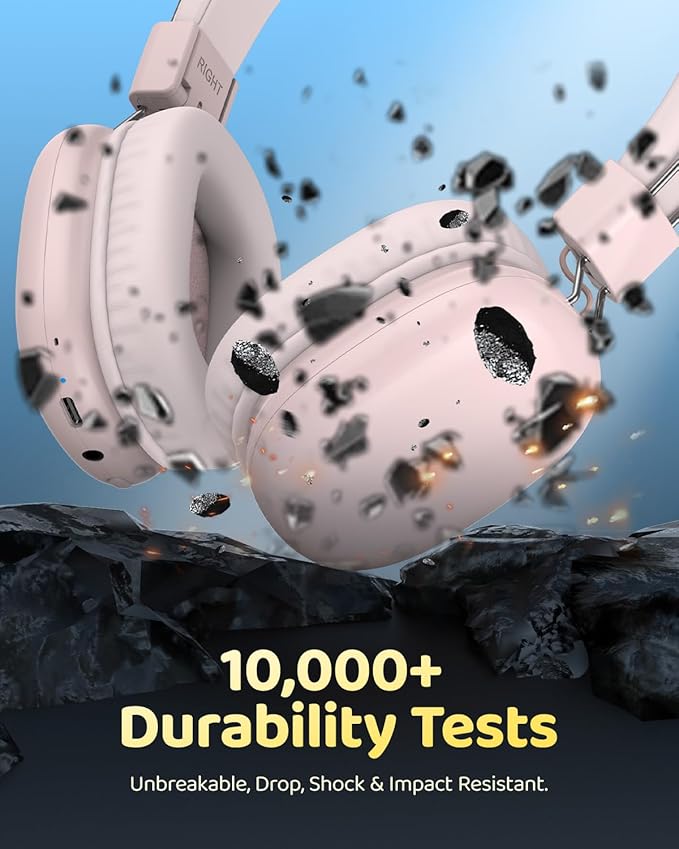 - Comfy & Portable: AT8 Bluetooth headphones for kids is lightweight with soft ear cups and a foldable design, making them perfect for kids and teens on the go.