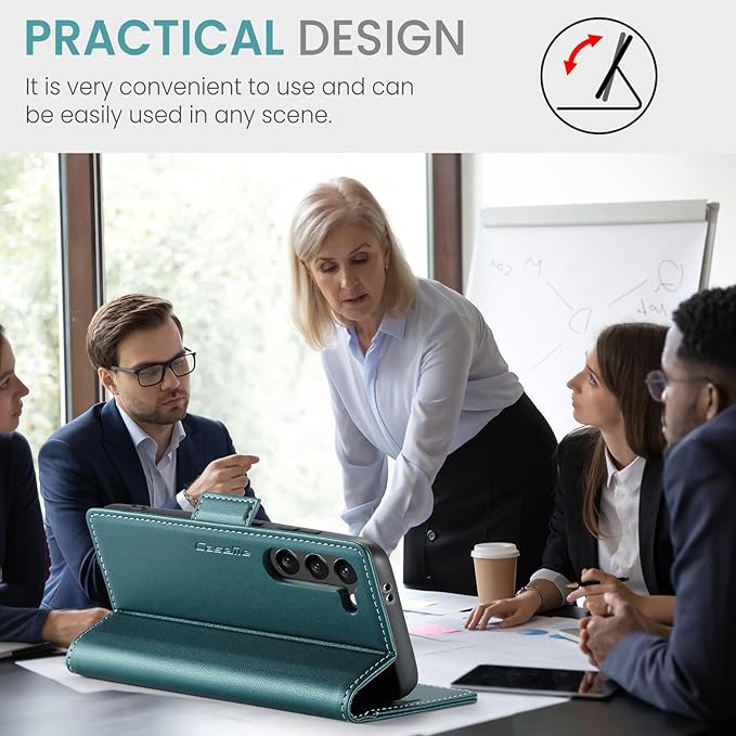 - [Multifunctional] This Galaxy S24 Flip Wallet Leather Case with Adjustable Stand frees up your hands by allowing you to watch videos or movies at the best angle.Whether you're studying,working,exercise or entertainments, this wallet case will meet your needs.
