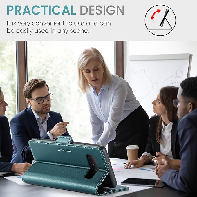 - [Multifunctional] This Galaxy S10 Flip Wallet Leather Case with Adjustable Stand frees up your hands by allowing you to watch videos or movies at the best angle.Whether you're studying,working,exercise or entertainments, this wallet case will meet your needs.