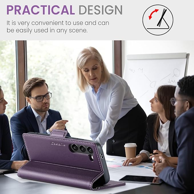 - [Multifunctional] This Galaxy S24 Flip Wallet Leather Case with Adjustable Stand frees up your hands by allowing you to watch videos or movies at the best angle.Whether you're studying,working,exercise or entertainments, this wallet case will meet your needs.