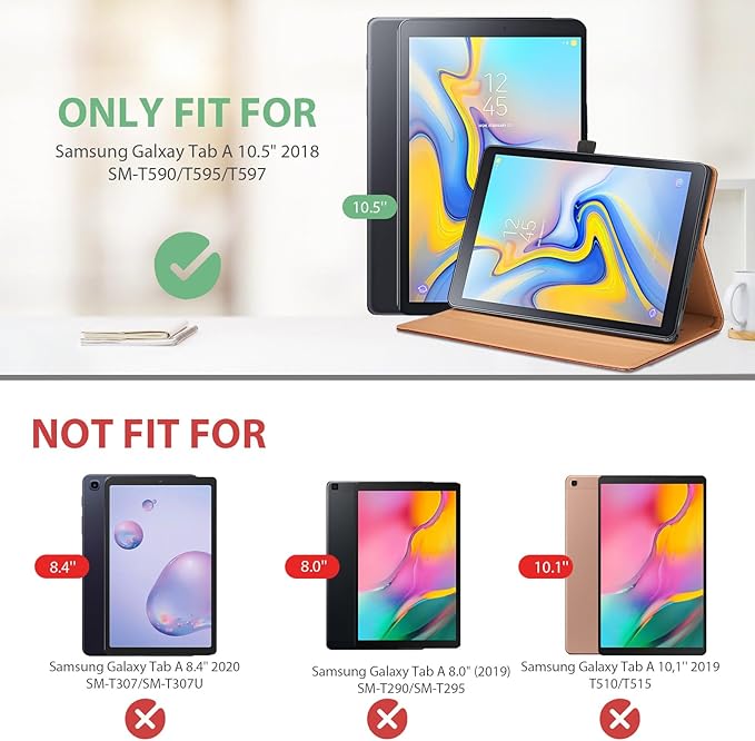 - Compatibility: Designed for the Samsung Galaxy Tab A 10.5 Inch 2018. Fit Models: SM-T590/T595/T597. NOT compatible with any other models. Please check your model number before the purchase.